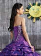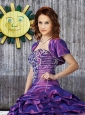 2015 Elegant Strapless Purple Quinceanera Dress with Pick Ups and Beading