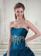 2015 Elegant Strapless Teal Quinceanera Dress with Appliques and Pick Ups