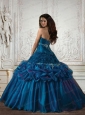 Home >  Quinceanera Dresses >  Clearance Quinceanera Dresses > 2015 Elegant Strapless Teal Quinceanera Dress with Appliques and Pick Ups