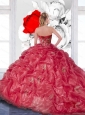2015 Exclusive Appliques and Ruffles Quinceanera Dress in Coral Red