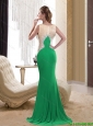 2015 Exclusive Bateau Bridesmaid Brush Train Green Dresses with Beading