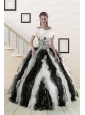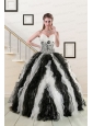 2015 Exclusive Black and White Quinceanera Dresses with Zebra and Ruffles