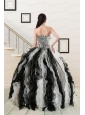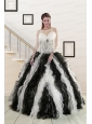 2015 Exclusive Black and White Quinceanera Dresses with Zebra and Ruffles