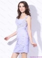 2015 Exclusive Lilac Mini Length Christmas Party Dress with Rhinestones and Ruching