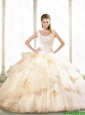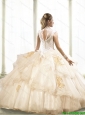 2015 Fall Perfect Appliques and Beaded Quinceanera Dresses in Champagne