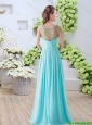 2015 Fall Perfect Beaded V Neck Side Zipper Prom Dresses in Aqua Blue
