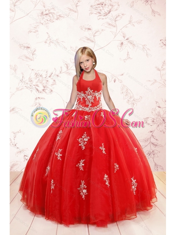 2015 Fashionable Appliques Red Little Girl Pageant Dress
