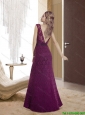 2015 Fashionable Belt and Lace Prom Dresses in Eggplant Purple