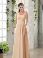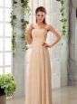 2015 Fashionable Champagne Ruching Chiffon Prom Dresses