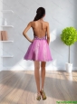 2015 Fashionable Halter Top A Line Backless Beading Elegant Bridesmaid Dresses in Lilac