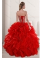 2015 Fashionable Red Quinceanera Dresses with Beading and Ruffles