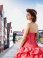 2015 Fashionable Sweetheart Appliques and Pick-ups Watermelon Red Dresses For a Quinceanera