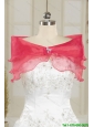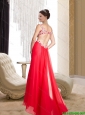2015 Fashionable V Neck Prom Dresses with Appliques and Brush Train