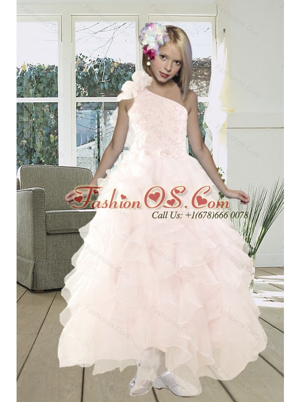 Home >  Special Occasion Dresses >  New Style Little Girl Pageant Dresses > 2015 Gorgeous A Line One Shoulder Baby Pink Prom Dress with Beading and Ruffles