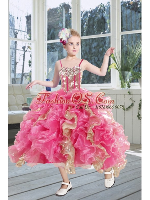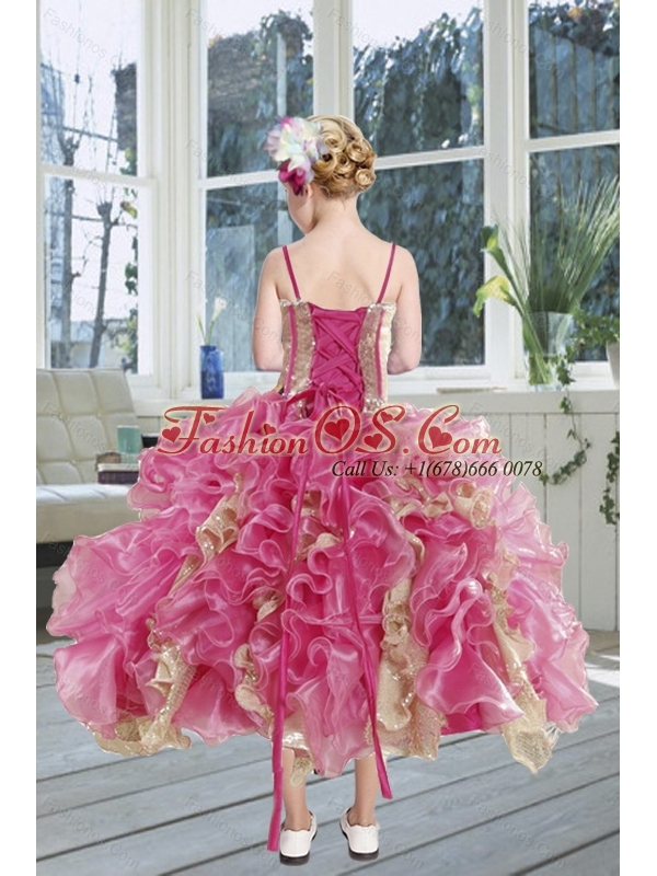 2015 Gorgeous Beading and Ruffles Flower Girl Dress in Pink and Gold