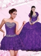 2015 Gorgeous Eggplant Purple Dresses for Quince with Beading and Ruffled Layers