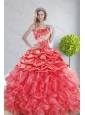 2015 GorgeousWatermelon Red Quinceanera Dresses with Appliques and Ruffles