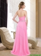 2015 High Neck Floor Length Modest Prom Dress with Beading and Brush Train