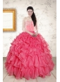 2015 Hot Pink Strapless Quinceanera Dresses with Beading and Ruffles