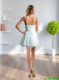 2015 Latest Spaghetti Straps Empire Beading Light Blue Bridesmaid Dress
