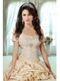 2015 Lovely Sweetheart Appliques Dresses for Quinceanera  in Champagne