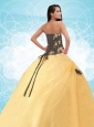 Home >  Quinceanera Dresses >  Beautiful Quinceanera Dresses > 2015 Luxirious One Shoulder Yellow Quince Dresses with Appliques