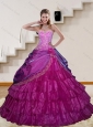 2015 Luxurious Appliques and Ruffled Layers Quinceanera Dresses in Fuchsia
