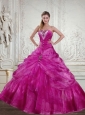 2015 Luxurious Fuchsia Quinceanera Dress with Beading and Pick Ups