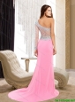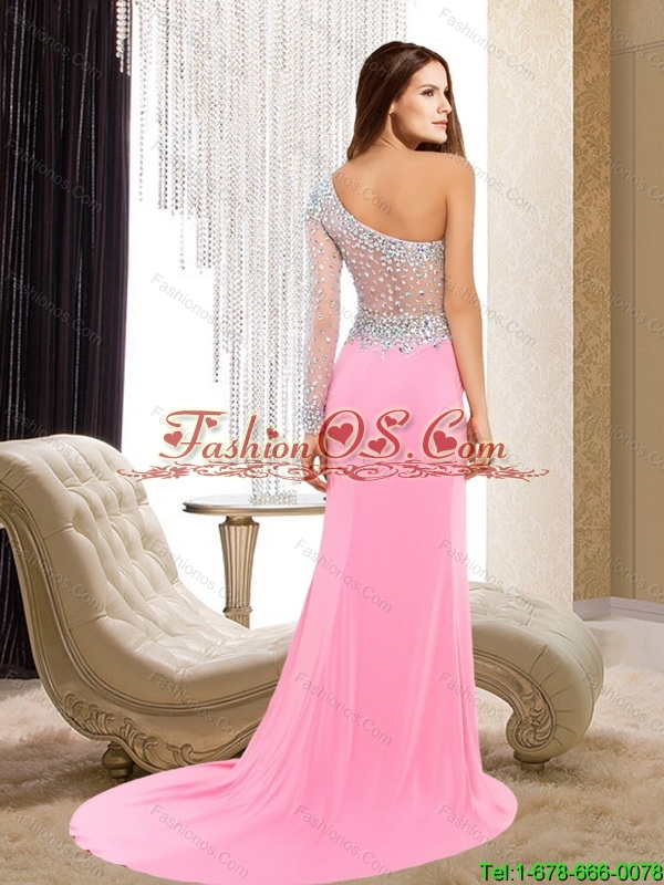 2015 Luxurious One Shoulder Sweep Train Elegant Bridesmaid Dresses with Beading and High Slit