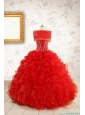 2015 Luxurious Sweetheart Beading Red Quinceanera Dresses