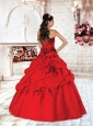 2015 Luxurious Sweetheart Organza Red Quinceanera Dress with Appliques and Pick Ups
