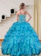 2015 Modern Baby Blue Quince Dresses with Beading and Ruffles