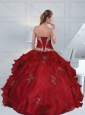2015 Modest Appliques and Beading Burgundy Quince Dresses