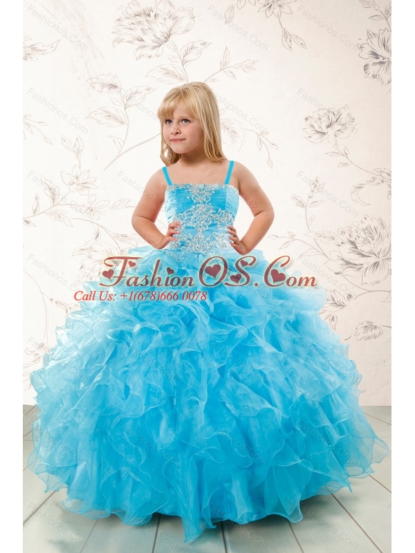2015 Modest Appliques and Ruffles Aqua Blue Little Girl Pageant Dress