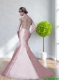 2015 Modest High Neck Mermaid Beading Prom Gown Dress in Black