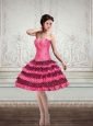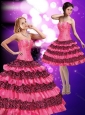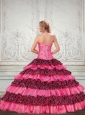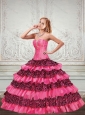2015 Modest Printed Sweetheart Ruffled Quinceanera Dresses in Hot Pink