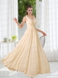 2015 Modest V Neck Empire Ruching Prom Dress