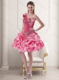 2015 Most Popular Appliques and Ruffles Watermelon Quinceanera Dress
