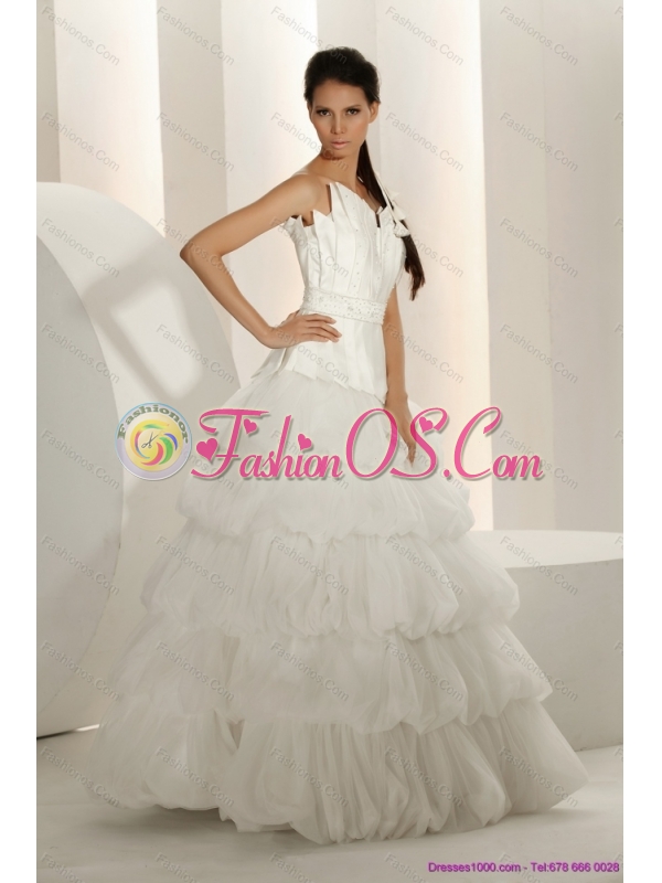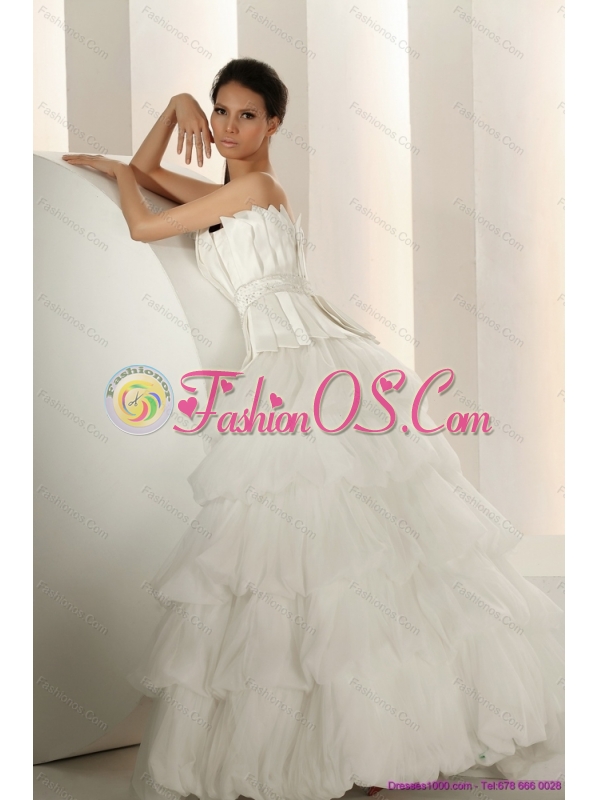 2015 New and Popular Beaded Strapless White Wedding Dresses with Ruffled Layers