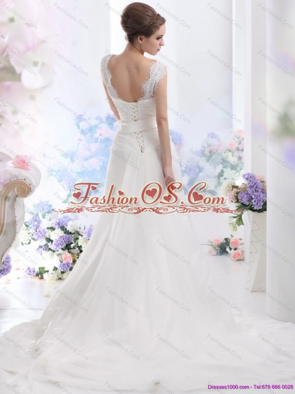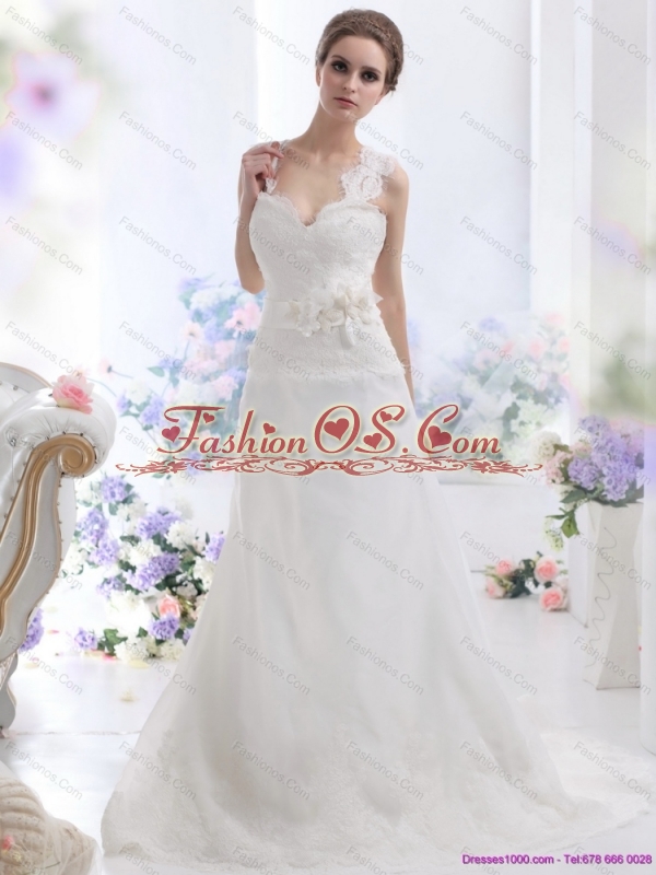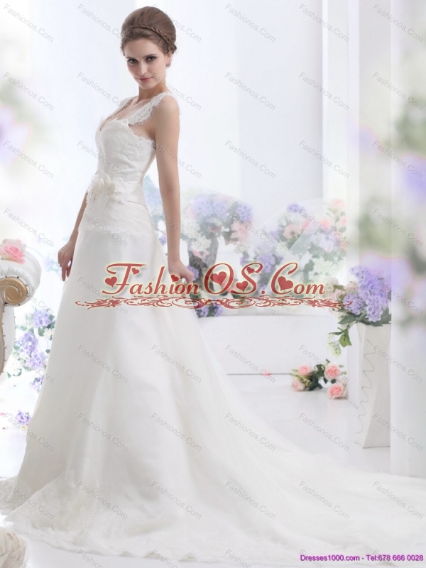 2015 New and Wonderful A Line Wedding Dress with Lace and Hand Made Flowers
