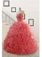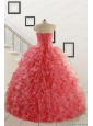 2015 New Arrival Watermelon Red Sweet 15 Dress with Beading