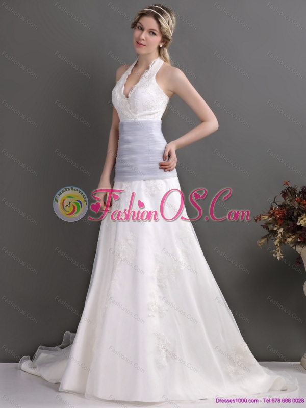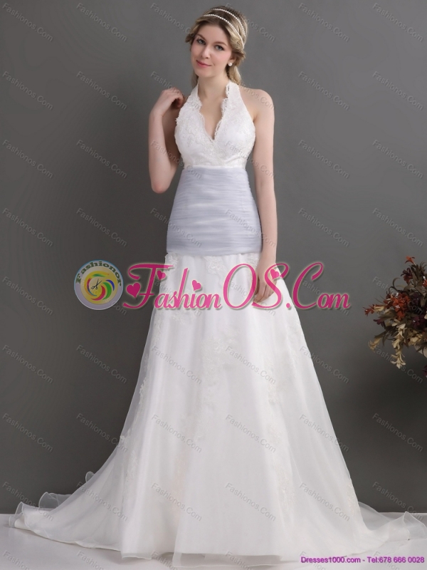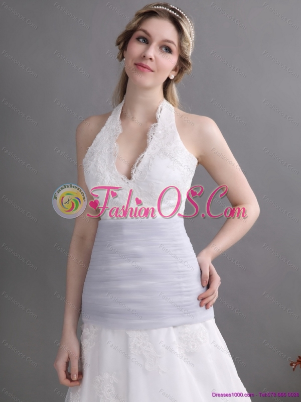 2015 New Halter Top Wedding Dress with Lace and Ruching