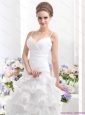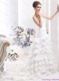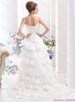 2015 New Ruching White Wedding Dresses with Ruffled Layers and Brush Train