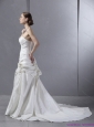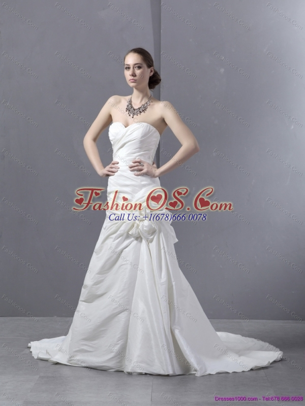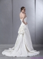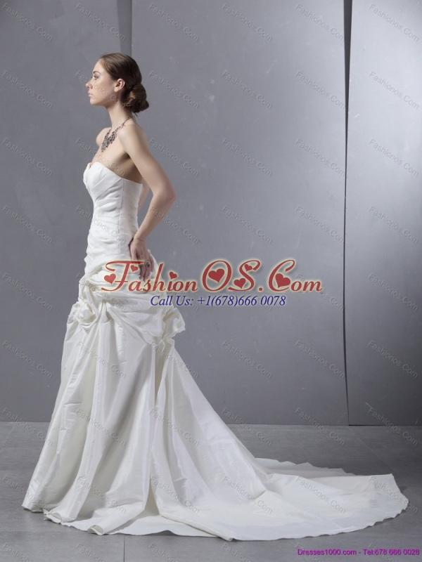 2015 New Ruffled Sweetheart Ruched White Wedding Dresses with Brush Train
