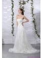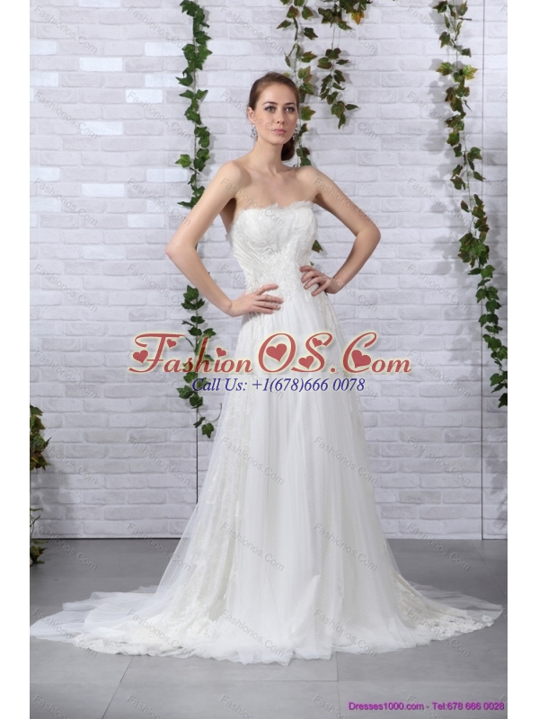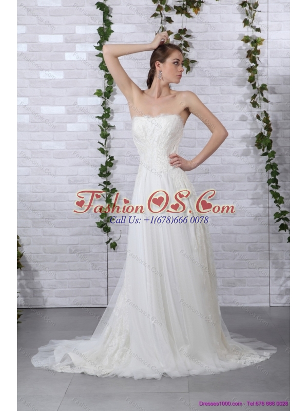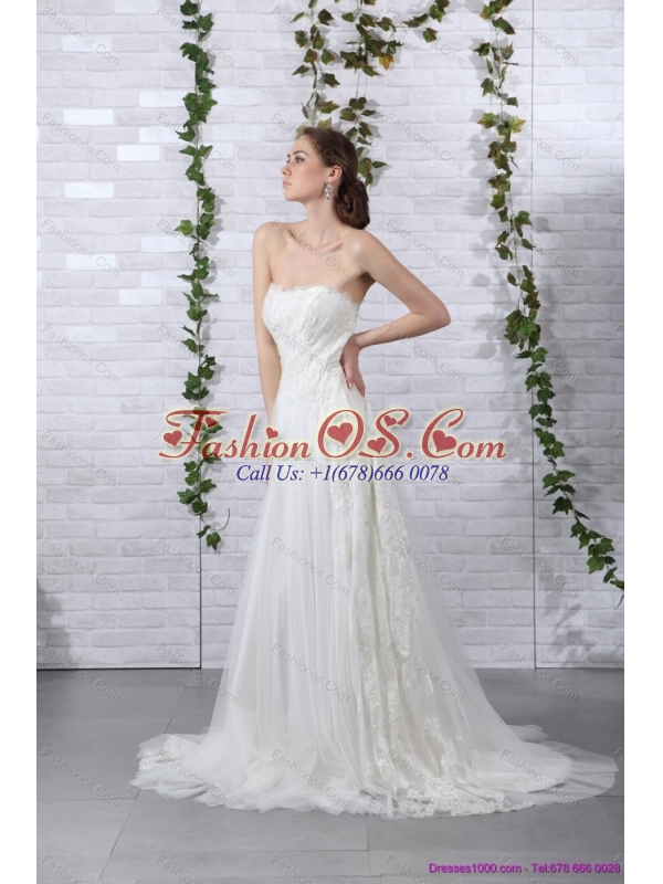 2015 New Ruffled White Strapless Wedding Gowns with Brush Train