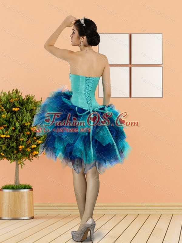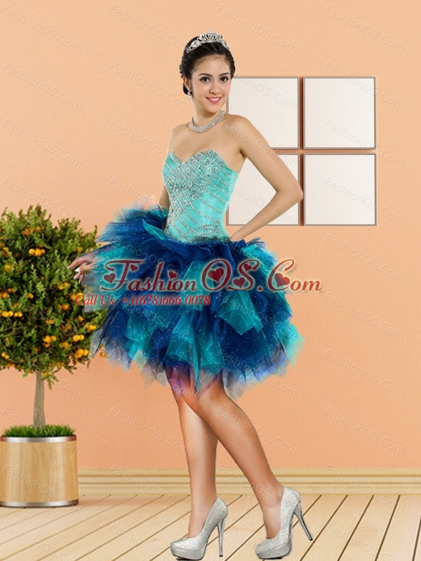 2015 New Style Beading and Ruffles Sweetheart Prom Dresses in Multi Color