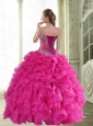 2015 New Style Beading and Ruffles Sweetheart Sweet 16 Dresses in Hot Pink