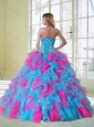 2015 New Style Multi Color Quinceanera Dress with Appliques and Ruffles