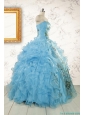2015 New Style Ruffles Embroidery Strapless Quinceanera Dresses in Baby Blue