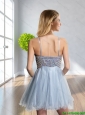 2015 New Style Spaghetti Straps Gery Prom Dress with Beading